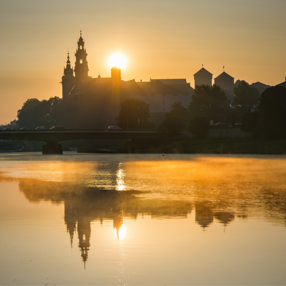 Wawel w listopadowym świetle wygląda inaczej niż latem — bardziej melancholijnie, a przez to jeszcze piękniej. Cienie katedry układają się dłużej na bruku, a nad Wisłą unosi się delikatna mgła. Z zamkowych murów rozpościera się widok na miasto spowite złotym blaskiem popołudnia, a echo dzwonu Zygmunta zdaje się brzmieć mocniej, kiedy wokół panuje cisza.